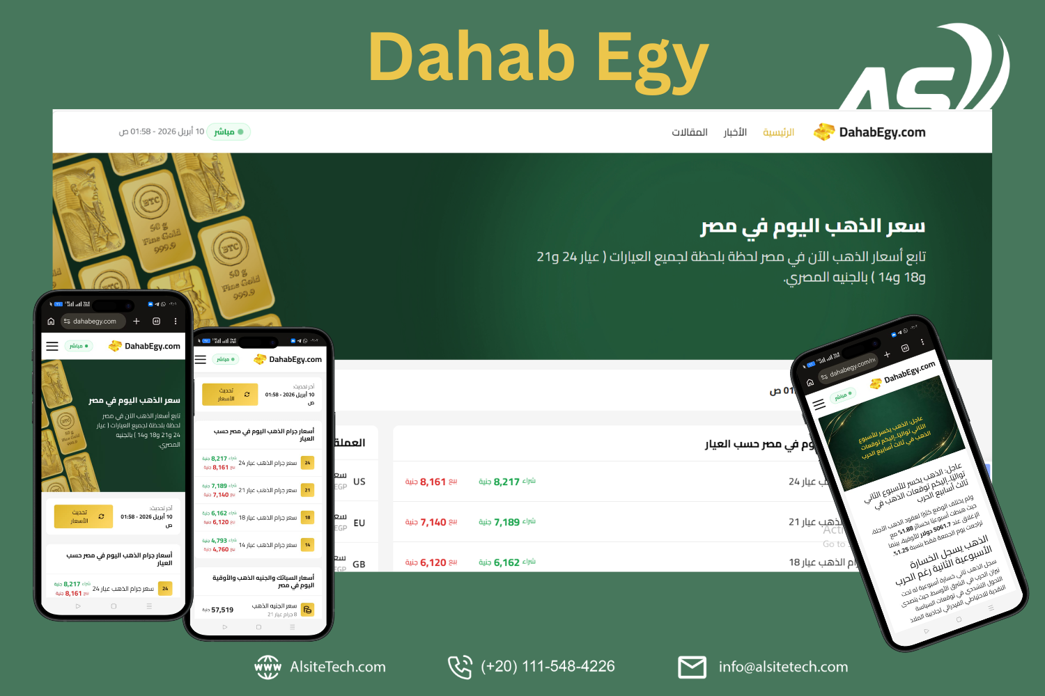 موقع Dahab EGY هو منصة رقمية متخصصة في متابعة أسعار الذهب والعملات في مصر بشكل لحظي، حيث يوفر للمستخدمين بيانات دقيقة ومحدثة تساعدهم على اتخاذ قرارات مالية واستثمارية صحيحة.
